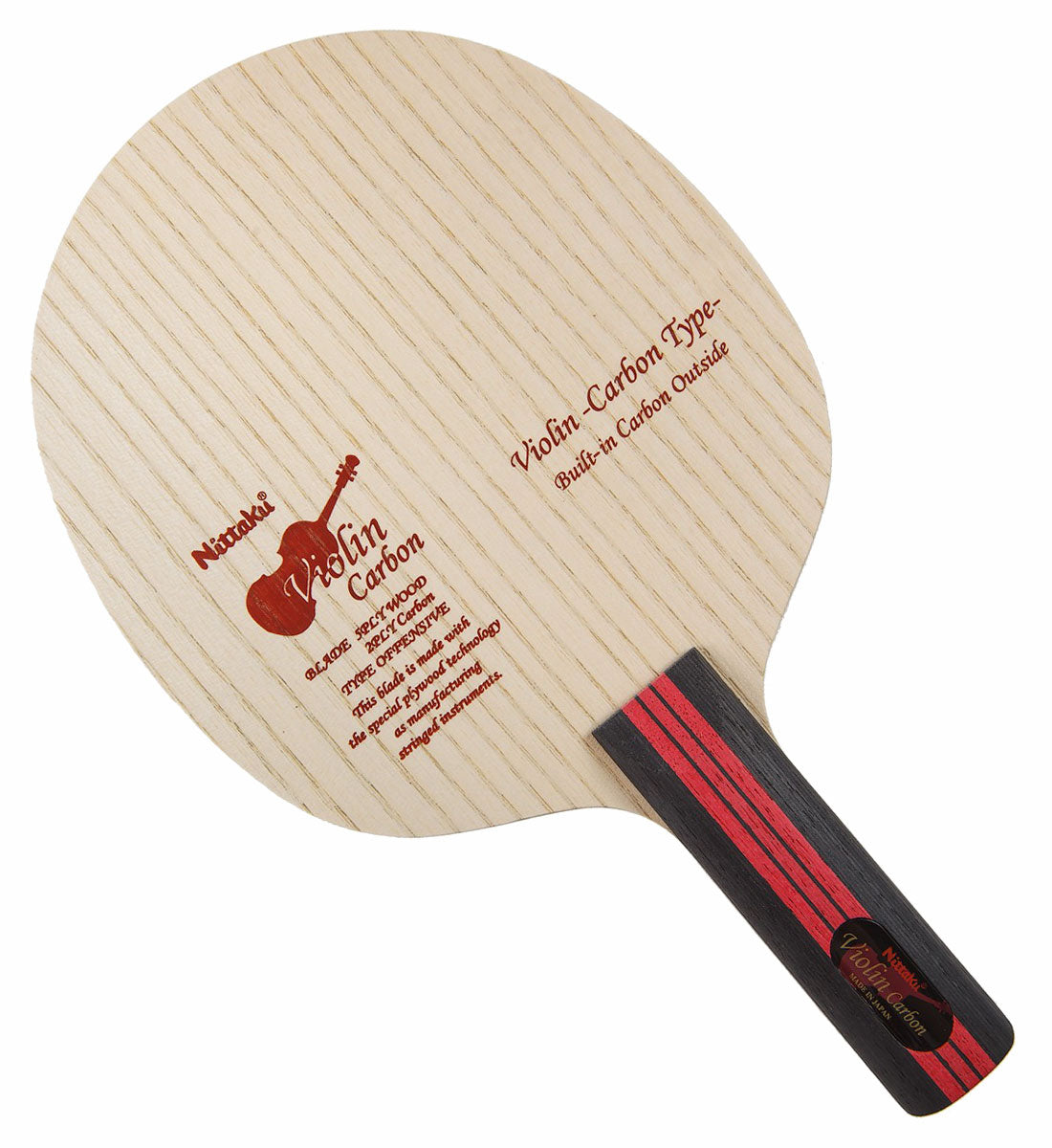 The Nittaku Violin blades are constructed with the special bonding method of stringed instrument to penetrate the adhesive deep into the wood of the racket, bringing a feeling of a unique core that is not felt in conventional rackets. Made in Japan.